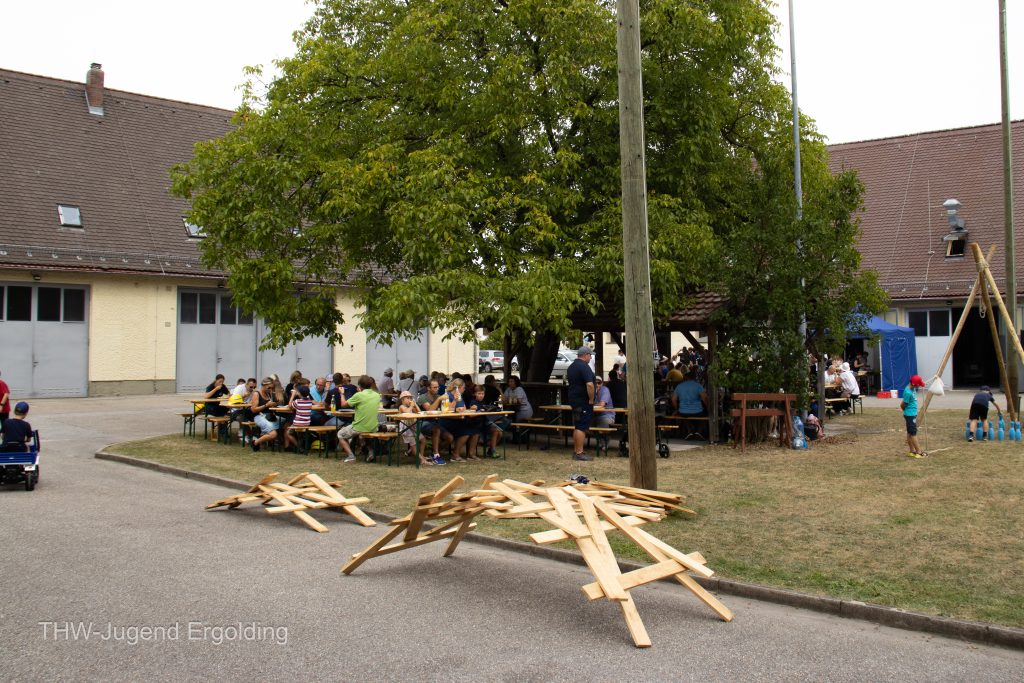 Am Sonntag, den 08. September fand unser Sommerfest statt. Gleich um 12:15 Uhr gab es die erste Vorführung für unsere Gäste: die Minigruppe baute Leonardo Brücken. Die beiden Jugendgruppen führten im Anschluss einiges vor: Es wurde mithilfe von Hydropresse und Greifzug eine Last bewegt, gleichzeitig wurde die Einsatzstelle abgesichert. Zusätzlich wurde ein Dreibock gebunden, damit das Kegel-Minispiel im Anschluss stattfinden konnte. Ein großer Dank geht an unser Verpflegungsteam, die für das leibliche Wohl der Gäste sorgten. Vielen Dank für all die gespendeten Speisen, die so eine große Abwechslung geboten haben. Ebenso danken wir den Mitgliedern der THW-historischen Sammlung, die sich die Zeit nahmen, ihre Fahrzeuge vorzustellen und den Interessierten alle Fragen zu beantworten. Ein Besonderer Dank gilt außerdem unseren Jugendhelfern+, die so ein tolles Sommerfest geplant und durchgeführt haben.